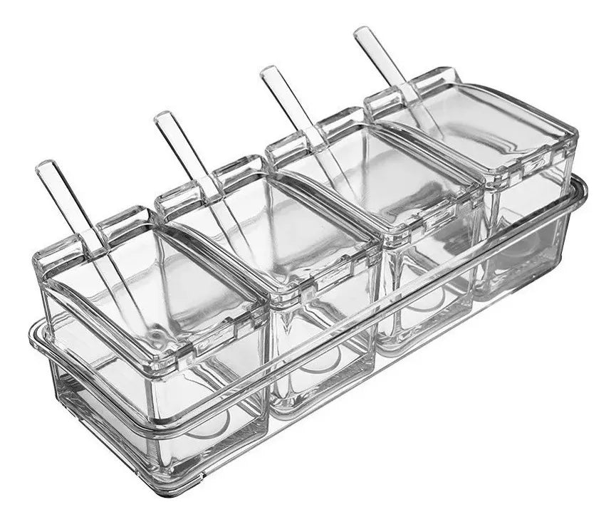 Perfecto para quienes desean mantener la cocina limpia y organizada, sin esparcir especias y condimentos.Con el tamaño ideal para tus necesidades.Hay 4 tarros acrílicos con tapasTamaño del recipienteAltura: 7,2 cmLongitud: 25 cmAncho: 9 cmKit organizador acrílico para condimentos y condimentos con soportetamaño del tarro* Longitud: 8 cm x ancho: 6 cm x altura: 7 cm