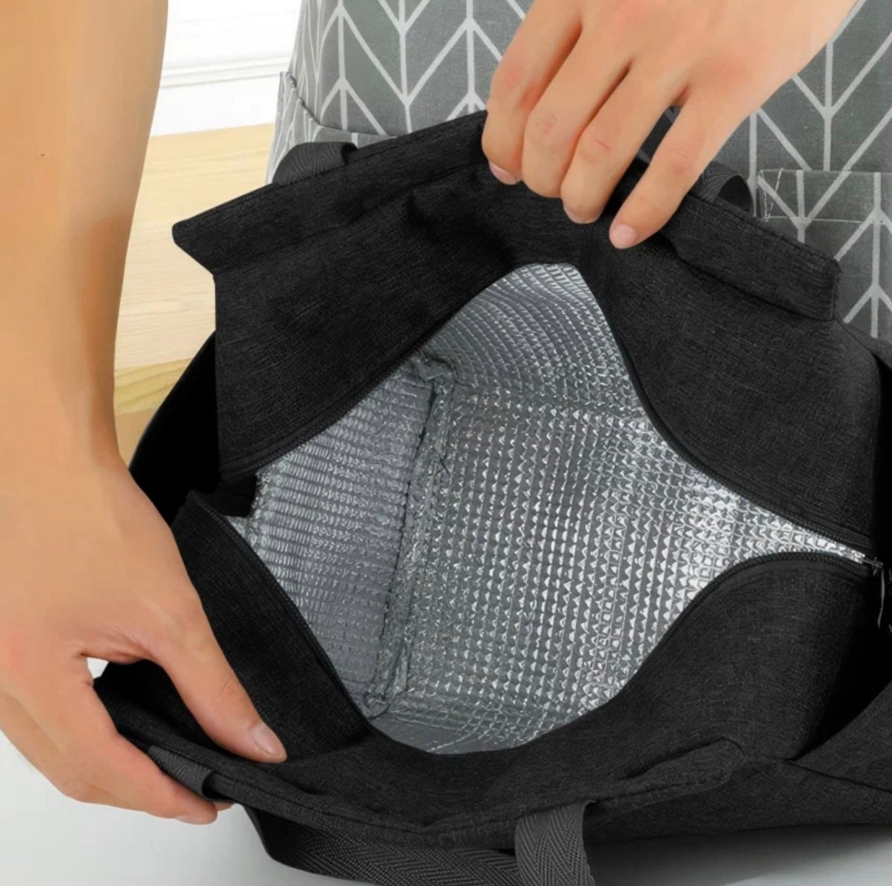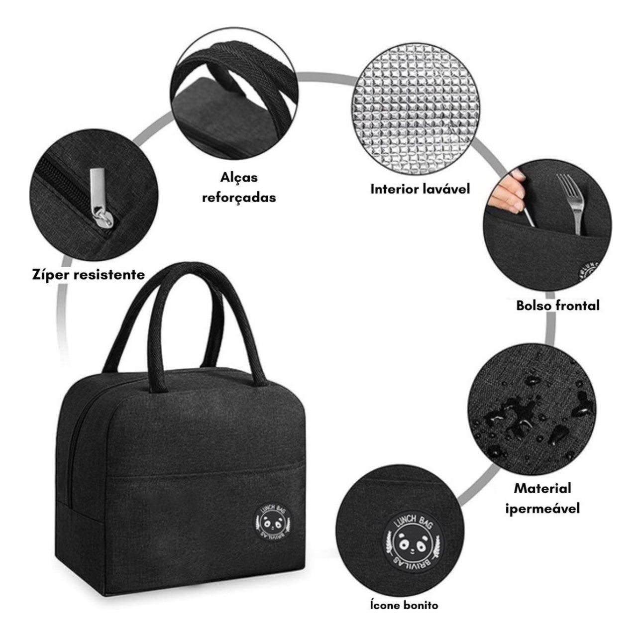 CARACTERÍSTICAS PRINCIPALESAislamiento Superior: Con un revestimiento aislante de triple capa y aislamiento de aluminio, tu comida, refrigerios y bebidas siempre se mantendrán frescos.Practicidad y Comodidad: Su correa de mano hace que sea fácil de llevar. Además, cuenta con un bolsillo frontal grande para otros artículos esenciales.Espacio Óptimo: Sus dimensiones (22cm x 13cm x 20cm) te permiten llevar el almuerzo de una persona o incluso múltiples contenedores de alimentos.Perfecta para Todas Tus AventurasYa sea para un pícnic, la oficina, o simplemente para ir de compras, esta bolsa de almuerzo es tu mejor compañera.Disfruta de la comodidad, durabilidad y la elegancia con nuestra bolsa de almuerzo premium. ¡No esperes más y lleva la tuya hoy mismo!